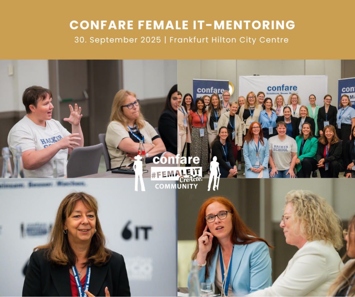 Am 30. September 2025 findet in Frankfurt das Confare Female IT-Mentoring statt – ein Ort, an dem Frauen in der IT voneinander lernen, Netzwerke knüpfen und gemeinsam die nächste Generation von Führungskräften stärken. 💡💪